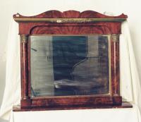 Ein Kommodenaufsatzspiegel, gerahmt von Halbsäulen unter einem Goldstuckgesims.