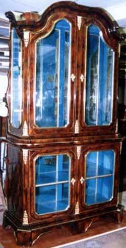 Die unsachgemäß ausgeführte Politur einer alten Restaurierung ( weißes Bimsmehl in den Poren der Politur ) wurde erneuert.