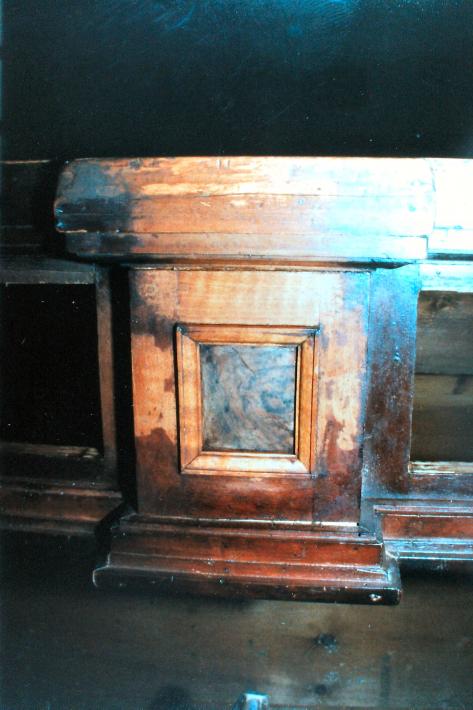 Das Furnier hatte sich aber an vielen Stellen gelöst. Ebenso die Schnitzereien und die Bastionsprofile in den Füllungsfeldern der Türen.