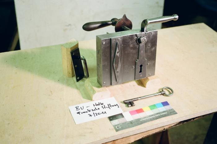Für zwei rekonstruierte linke Außentüren mußten zwei Kastenschlösser gemäß dem Bestandsschloß rekonstruiert werden.